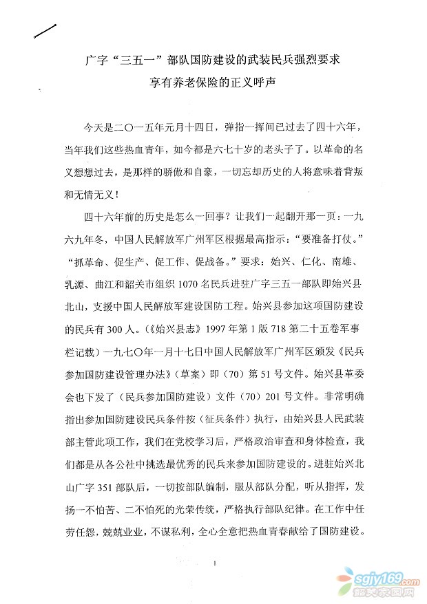 正文摘要:廣字"351"部隊(duì)國(guó)防建設(shè)的武裝民兵強(qiáng)烈要求享有養(yǎng)老保險(xiǎn)的呼聲 |