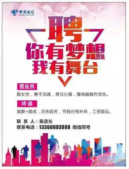 招聘電信營業(yè)員,業(yè)務員各兩名